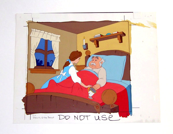 This is a painted cel for Disney's Beauty and the Beast. It is marked C-1 R, meaning reel C, 1st view, right image.