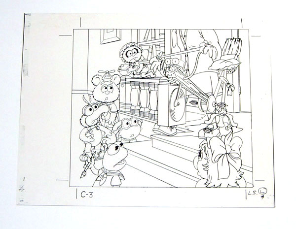 This is an unpainted cel for the Muppet Babies. It is marked C-3 L, meaning reel C, 3rd view, left image.