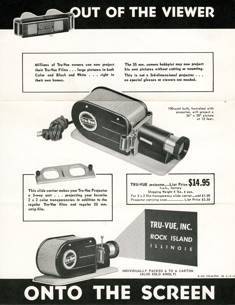 Since I have seen only one advertisement for anything relating to Tru-Vue and projection, some of the following comments are a guess as to the order and actual production by Tru-Vue for projecting their films.