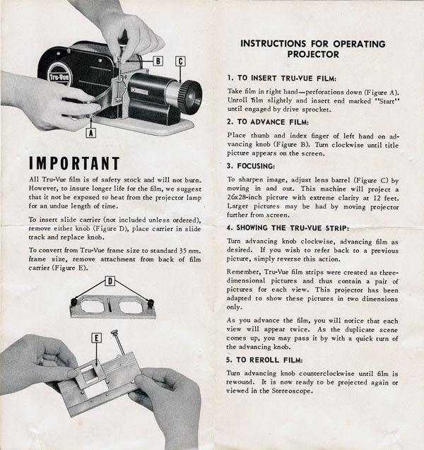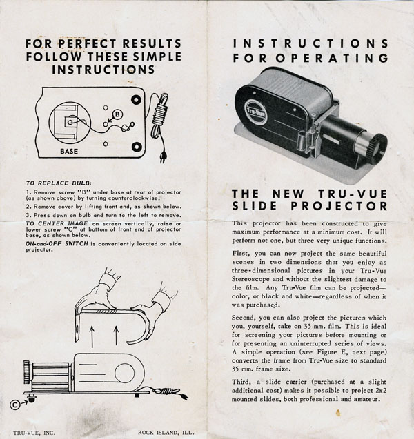 Here are scans of the two sides of the Tru-Vue projector instructions.