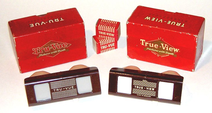 In the early 1950's an English version of the Tru-Vue viewer and films was manufactured by the Signaling Equipment Ltd. company (abbreviated S.E.L. on the viewer and packaging) under the brand name "True-View". Signaling Equipment Ltd. is no longer in business, and not much is know about the connection between its product and American Tru-Vue line. However, since the True-View viewer and film formats are almost an exact copy of the Tru-Vue product line (even the packaging is nearly identical!) there is strong speculation that either a licensing agreement between Tru-Vue and S.E.L. existed, or that when Sawyers bought out Tru-Vue in 1951 they actually sold the molds and machinery to S.E.L. In either case, by the early 1950's there were several photographic related products using the brand name "Tru-Vue", so S.E.L. probably changed the name to True-View to avoid trademark infringements.
